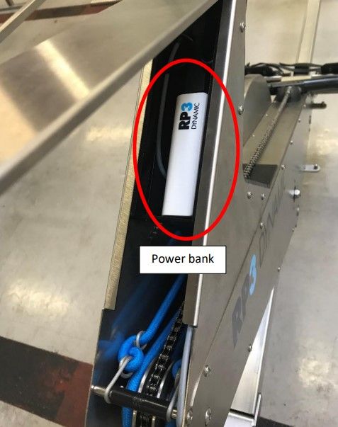 - If you have a Bluetooth compatible model S, the Bluetooth module is powered by a rechargeable powerbank. This powerbank will need recharging roughly once a month. It is recharged with a standard micro-USB charger and accessed by unscrewing the black thumbscrew on the back of the machine and lifting the panel (see below). The powerbank can be unplugged from the machine to recharge it.